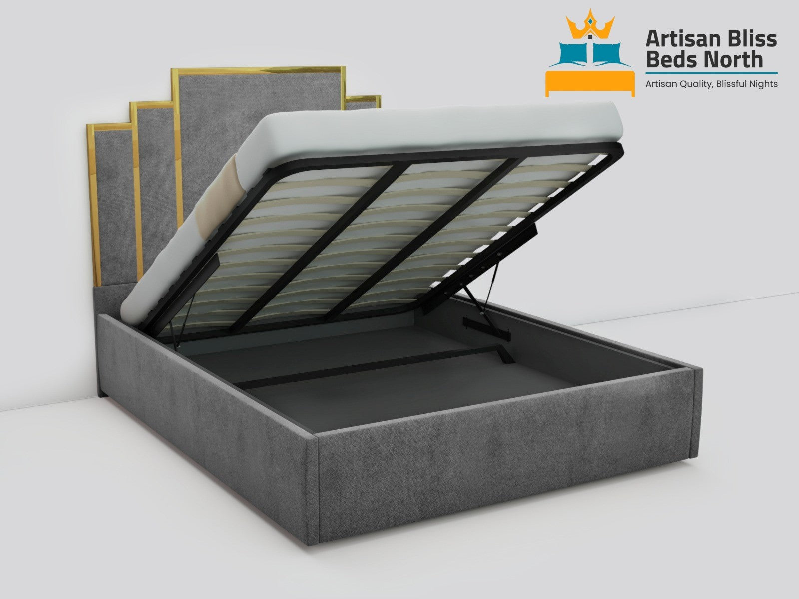 Artisan Bliss Beds North Limited's Grand Luxe Storage Bed is a striking example of style and functionality. Designed to make an impression, this high-end bed adds texture and grandeur to any bedroom with its lavish upholstery and towering, sumptuous headboard with deep tufting. Its traditional good looks and velvety fabric make it the perfect focal point for elegant rooms.