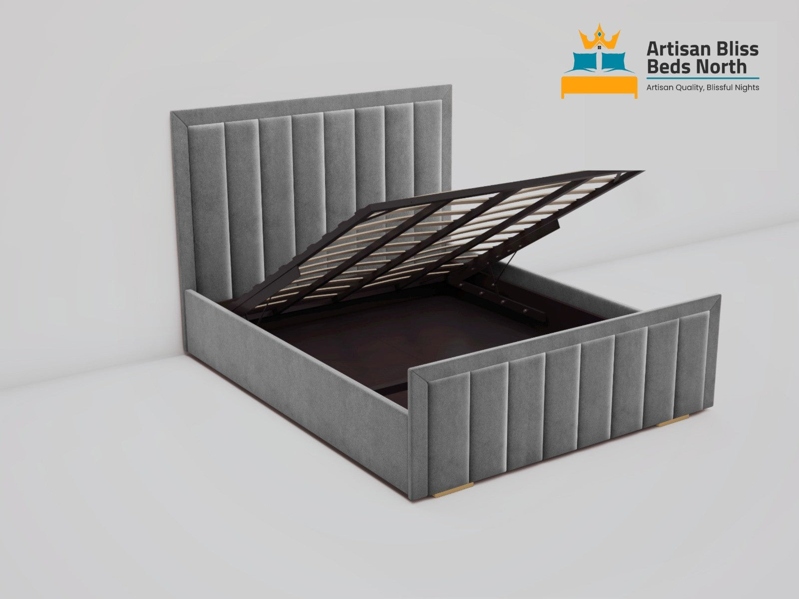 An elegant representation of contemporary opulence and intelligent design, the Strip Linear Storage Bed is a creation of Artisan Bliss Beds North Limited. With its meticulous design and striking vertical lining pattern on the headboard and footboard, this high-quality bed will be the perfect addition to any bedroom. Its high-quality, soft-touch fabric upholstery and understated design will add refined elegance and tranquillity to any room.